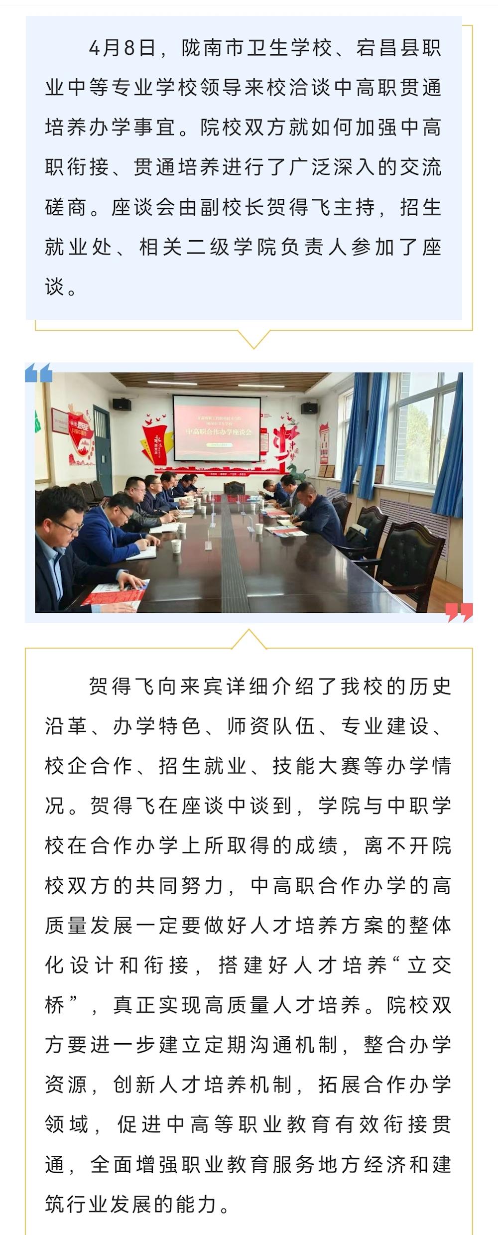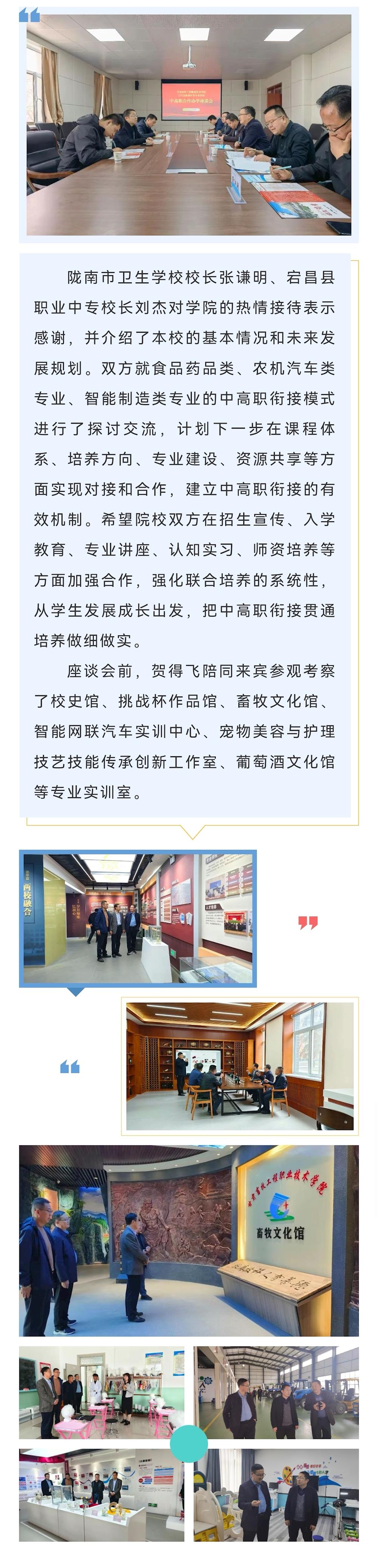 陇南市卫生学校、宕昌县职业中等专业学校领导来校洽谈合作办学事宜 管理入口 来源: 发布时间:2024-04-15 17:08:00 浏览次数: 次 【字体:小 大】 终审:招生就业处 分享到: 【打印正文】